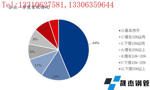 4、預(yù)計(jì)一季度營(yíng)業(yè)收入有所上漲。預(yù)計(jì)企業(yè)一季度營(yíng)業(yè)收入有所增長(zhǎng)的占比32%,其中增長(zhǎng)10%以上的和增長(zhǎng)10%以內(nèi)的均占16%;與去年同期相比,預(yù)計(jì)企業(yè)一季度營(yíng)業(yè)收入基本持平的占比44%。