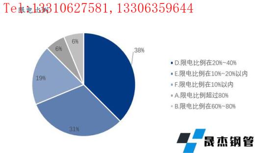 本次調(diào)研存在限電情況的企業(yè)所在地中,限電比例超過(guò)80%的占比為6%,限電比例在60%-80%的占比為6%,限電比例在20%-40%的占比為38%,限電比例為20%以內(nèi)的占比為50%。