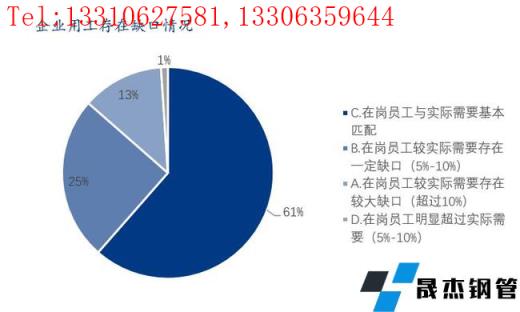 本次調(diào)研樣本企業(yè)中在崗員工數(shù)量較實(shí)際需要存在缺口的企業(yè)占比38%;在崗員工數(shù)量較實(shí)際需要基本匹配的占61%;在崗員工數(shù)量超過(guò)實(shí)際需要的占比1%。