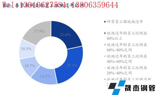 去年各地對“就地過年”政策響應(yīng)較為積極,春節(jié)期間員工就地過年比例較高。今年春節(jié)期間員工就地過年比例達(dá)80%以上的企業(yè)占調(diào)研樣本比例達(dá)到46.8%,同時就地過年的員工比例不到20%的企業(yè)占比17.9%。