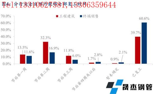 分行業(yè)來看,終端銷售樣本企業(yè)中,60.6%的企業(yè)目前已經(jīng)完全復(fù)工,節(jié)后第二周內(nèi)能夠復(fù)工的樣本企業(yè)占比可以達(dá)到89.1%,主要由于今年節(jié)前冬儲備貨情況整體較少,節(jié)后開門紅的行情走勢下,很多企業(yè)提前復(fù)工,積極入市詢價采購,以爭取利潤最大化。工程建筑樣本企業(yè)中,39.7%的企業(yè)目前已經(jīng)完成復(fù)工,節(jié)后第二周內(nèi)能夠復(fù)工的樣本企業(yè)占比可以達(dá)到85.6%,整體進度情況也要好于往年同期水平。僅0.9%的工程建筑企業(yè)和2.1%的終端銷售企業(yè)暫未有明確的復(fù)工時間,主要是受疫情以及冬奧會的影響。