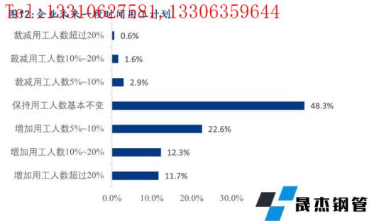 6、目前企業(yè)在崗員工人數(shù)與實際需求基本匹配的占比為48.0%,35.5%的企業(yè)目前在崗員工人數(shù)與實際需求相比存在少量的缺口,46.6%的企業(yè)在未來一段時間內(nèi)有增加用工人數(shù)的計劃,由此可見未來一段時間內(nèi)行業(yè)用工需求依然較大,僅僅只有5.1%的企業(yè)未在崗員工人數(shù)超過實際需求,預(yù)計未來一段時間會有少量的人員裁減計劃。