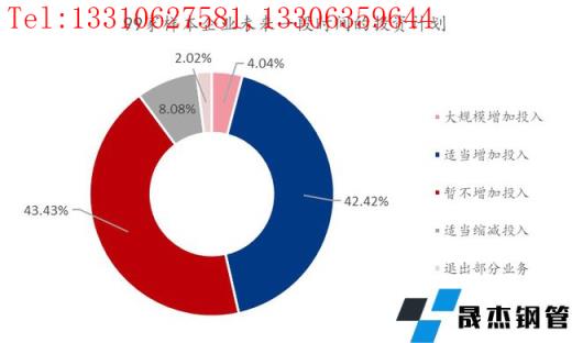 從圖30上看,未來(lái)一段時(shí)間企業(yè)會(huì)大規(guī)模增加投入的占比為4.04%,適當(dāng)增加投入的占比為42.42%,暫不增加投入的占比為43.43%,適當(dāng)縮減投入的占比為8.08%,退出部分業(yè)務(wù)的占比為2.02%。