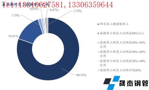 春節(jié)期間所有員工都放假停工的企業(yè)占調(diào)研樣本83.64%,同時(shí)有1.75%的企業(yè)放假停工的員工比例不到20%。