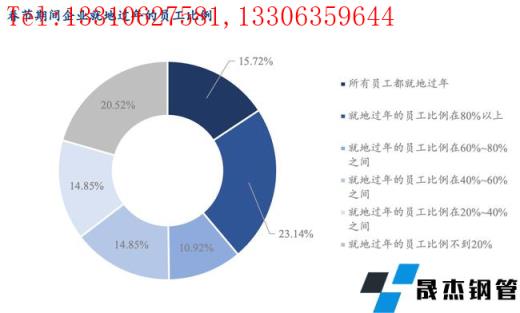 今年所有員工都就地過年的比例為15.72%,就地過年的員工比例在60%以上的企業(yè)占樣本49.78%,還有20.52%的企業(yè)就地過年員工比例不到20%。