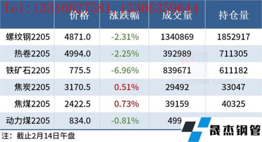 免責聲明:本網站(山東聊城晟杰無縫鋼管廠m.cuirutang.cn)刊載的“2022年02月14日午報:鋼價多數下跌,鐵礦石期貨跌逾6%”等均源于網絡,版權歸原作者所有,且僅代表原作者觀點,本文所載信息僅供參考。轉載僅為學習與交流之目的,如無意中侵犯您的合法權益,請及時聯系刪除。本網站刊登此篇文章并不意味著本站贊同其觀點或證實其內容的真實性,我們不對其科學性、嚴肅性等作任何形式的保證。如果侵犯了您的版權,請盡快聯系我們予以撤銷,謝謝合作!