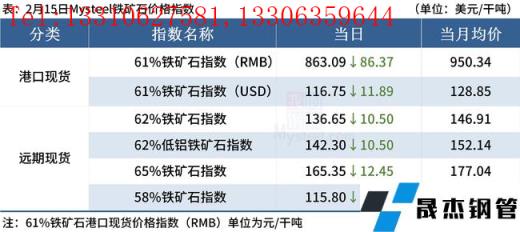 ◎ 2月14日上午,中國鋼鐵工業(yè)協(xié)會副會長駱鐵軍與力拓(Rio Tinto)鐵礦市場營銷副總裁方睿思(Simon Farry)舉行視頻會議,雙方就中國鋼鐵行業(yè)運行、力拓的生產(chǎn)與銷售、近期鐵礦石市場情況等進行了交流。力拓方面表示,贊同鐵礦石價格應由實際供需決定,力拓將繼續(xù)開展現(xiàn)貨交易以支持公開透明的價格形成,并將盡最大努力來滿足中國對其鐵礦石品質(zhì)和數(shù)量的需求。