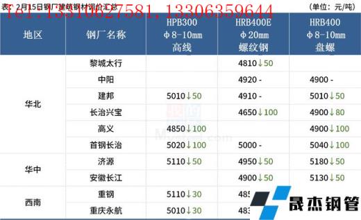 ◎ 2月15日,焦炭市場弱穩(wěn)運行,唐山個別無縫厚壁鋼管廠家焦炭提降200元/噸,主流地區(qū)暫無回應,市場多觀望為主。