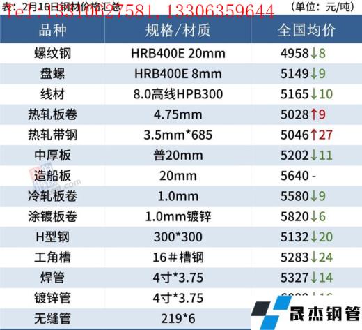 建筑厚壁無縫鋼管:2月16日,全國31個主要城市20mm三級抗震螺紋鋼均價4958元/噸,較上個交易日跌8元/噸。短期來看,隨著原料價格的走弱,需求持續低迷,市場悲觀情緒漸濃,貿易商低價套現操作較為普遍。元宵之后下游工地存在一定復工預期,但未來幾日又將持續雨水天氣,需求釋放力度仍有待考證,預計17日國內建筑厚壁無縫鋼管價格或將止跌企穩。
