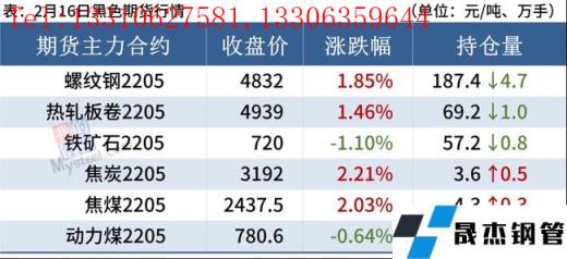 熱軋板卷:2月16日,全國24個主要城市4.75mm熱軋板卷均價5028元/噸,較上個交易日上漲9元/噸。早盤維穩,現貨報價部分地區補跌,成交表現偏弱,午后期卷上漲,下游采購量稍有好轉,全天成交一般。綜合來看,目前冬奧會正在舉行,全國兩會等也即將召開,在無縫厚壁鋼管廠家限產擾動下熱卷產量下降,壓縮熱卷現貨供應,低供應格局給予卷價一定支撐。但后市需要關注冬奧會后,供應是否會出現階段性回升,并且月底前需求沒有如期兌現,屆時供需矛盾將會凸顯。綜合來看,預計17日熱軋板卷價格或震蕩偏強為主。