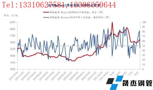 具體各品種指數(shù)來看,2月18日建筑厚壁無縫鋼管情緒指數(shù)為45.73,較2月11日回落36.07;熱軋板卷情緒指數(shù)為55.12,較2月11日回落28.09;冷軋板卷情緒指數(shù)為40.75,較2月11日回落38.02;中厚板情緒指數(shù)為59.44,較2月11日回落33.98;結(jié)構(gòu)鋼情緒指數(shù)為37.04,較2月11日回落37.04;工業(yè)線材情緒指數(shù)為60.92,較2月11日回落5.98;鍍鋅板卷情緒指數(shù)為46.87,較2月11日回落39.25;焊接厚壁鋼管情緒指數(shù)為41.47,較2月11日回落45.93;無縫厚壁鋼管情緒指數(shù)為53.98,較2月11日回落38.07;帶鋼情緒指數(shù)為55.96,較2月11日回落29.15。