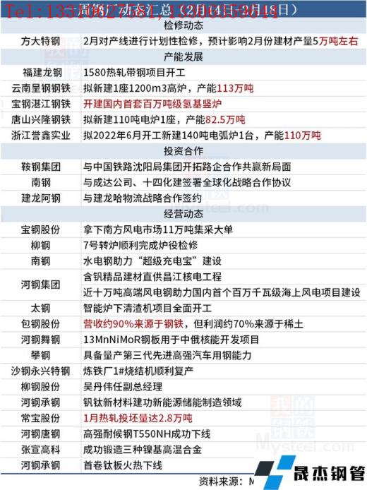 免責聲明:本網站(山東聊城晟杰無縫鋼管廠m.cuirutang.cn)刊載的“一周無縫鋼管廠家動態匯總(2月14日-2月18日)”等均源于網絡,版權歸原作者所有,且僅代表原作者觀點,本文所載信息僅供參考。轉載僅為學習與交流之目的,如無意中侵犯您的合法權益,請及時聯系刪除。本網站刊登此篇文章并不意味著本站贊同其觀點或證實其內容的真實性,我們不對其科學性、嚴肅性等作任何形式的保證。如果侵犯了您的版權,請盡快聯系我們予以撤銷,謝謝合作!