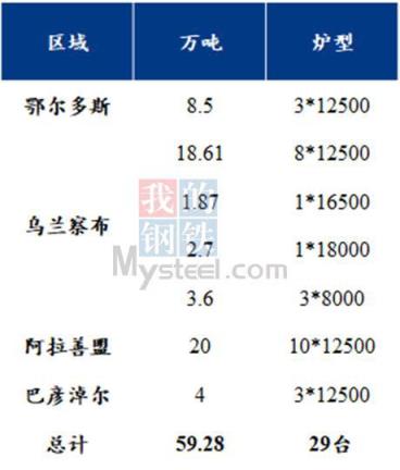 1、退出類:內(nèi)蒙古區(qū)域25000千伏安及以下礦熱爐: 共計29臺,涉及量59.28萬噸,占內(nèi)蒙古硅錳產(chǎn)能10.7%。其中:烏蘭察布市13臺,共計26.78萬噸(45.2%),鄂爾多斯市3臺,共計8.5萬噸(14.3%),阿拉善盟10臺,共計20萬噸(33.7%),巴彥淖爾3臺,共計4萬噸(6.7%)。