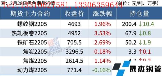 2月28日,國內厚壁無縫鋼管市場多數上漲,唐山普方坯出廠價穩報4550元/噸。隨著天氣回暖,下游終端及投機性需求均有好轉。今日黑色期貨市場普漲,部分商家順勢跟漲,但各品種、地區表現有所分化。