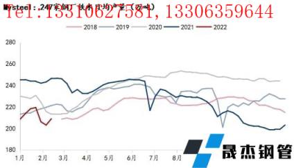 2月高爐產(chǎn)能利用率也呈現(xiàn)先降后增趨勢(shì),2月底調(diào)研247家無縫厚壁鋼管廠家高爐煉鐵產(chǎn)能利用率77.61%,比1月底下降3.9%;2月底日均鐵水產(chǎn)量208.85萬噸,比1月底下降10.5萬噸,2月日均鐵水產(chǎn)量206萬噸,月環(huán)比下降10.59萬噸。2月由于冬奧會(huì)限產(chǎn),無縫厚壁鋼管廠家落實(shí)良好,鐵水產(chǎn)量出現(xiàn)明顯下滑,也是導(dǎo)致焦炭節(jié)后下調(diào)的核心因素,進(jìn)入下旬后,隨冬奧會(huì)結(jié)束,無縫厚壁鋼管廠家復(fù)產(chǎn)預(yù)期強(qiáng)烈,且20日后復(fù)產(chǎn)兌現(xiàn)良好,需求支撐下,焦炭成功反彈。