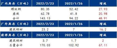 截至2月23日,省內(nèi)14家樣本無縫厚壁鋼管廠家廠內(nèi)建材庫存共計143.13萬噸,其中螺紋庫存80.35萬噸,線盤庫存62.78萬噸。除廠內(nèi)庫存外,目前無縫厚壁鋼管廠家外庫共23.2萬噸,庫存前移至消費地共3.7萬噸。從近三年省內(nèi)庫存數(shù)據(jù)來看,目前省內(nèi)無縫厚壁鋼管廠家建材庫存低于去年同期,主要原因在于去年省內(nèi)無縫厚壁鋼管廠家冬儲自儲比例較大,今年的庫存整體處于近三年的中高位水平。目前省內(nèi)無縫厚壁鋼管廠家?guī)齑嬉殉尸F(xiàn)下降態(tài)勢,周邊市場需求逐步啟動,供應(yīng)端產(chǎn)能利用率緩慢恢復(fù)下,預(yù)計后期庫存去化速率或有加快。