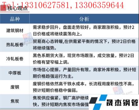 今日黑色系期貨強(qiáng)勢上漲,現(xiàn)貨市場價格積極跟漲,市場交投情緒積極,成交明顯放量。預(yù)計短期國內(nèi)厚壁無縫鋼管價格將延續(xù)漲勢。