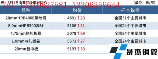 ◎ 首鋼京唐計劃于3月2日對一條1580mm熱軋生產(chǎn)線做檢修,為期11天,總影響產(chǎn)量約在11萬噸左右;并預計于3月3日對一座5500m3高爐進行檢修至3月7日結(jié)束,為期5天左右,影響鐵水產(chǎn)量總計在6萬噸左右;此外還計劃于3月2日對酸連軋生產(chǎn)線做檢修,為期8天,總影響產(chǎn)量約在5萬噸左右。