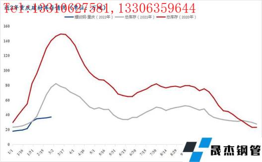 截至2月28日,重慶建材庫存總計63.5萬噸,較節前增加12.6萬噸,增幅24.75%。節后冬儲資源逐漸到達市場,貿易商兌現利潤意愿強,2月下旬累庫速度逐漸放緩,當前庫存環比同期處于近3年來最低水平。另外,3月份是傳統旺季,下游需求釋放必然會明顯增加,重慶庫存或很快出現下降,整體庫存壓力不大。