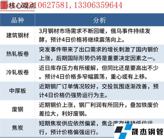 建筑厚壁無縫鋼管:3月3日,全國31個主要城市20mm三級抗震螺紋鋼均價4949元/噸,較上個交易日上漲25元/噸。供應(yīng)方面,隨冬奧會結(jié)束,3月產(chǎn)量回升是確定性事件,在后期殘奧會及兩會結(jié)束后,產(chǎn)量后續(xù)的回升速度加快;成交來看,進入金3月,近期市場情緒好轉(zhuǎn),且下游終端陸續(xù)復(fù)工,現(xiàn)貨價格跟隨期貨價格反彈后,成交也逐漸進入正軌。短期來看,在3月市場需求不斷回暖的情況下,還需繼續(xù)驗證在3月后期需求能否大規(guī)模的復(fù)蘇,若需求恢復(fù)力度尚可,疊加國內(nèi)宏觀利好持續(xù)推進,國際俄烏事件持續(xù)發(fā)酵,從而支撐國內(nèi)外厚壁無縫鋼管價格,因此預(yù)計4日國內(nèi)建筑厚壁無縫鋼管或?qū)⒗^續(xù)震蕩向上。