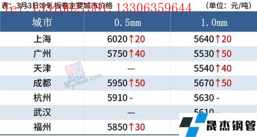 冷軋板卷:3月3日,全國24個主要城市1.0mm冷卷均價5625元/噸,較上個交易日上漲23元/噸。據(jù)局部市場反饋,3日市場整體出貨情況較上一交易日略有好轉(zhuǎn),午后市場商家有補漲;庫存方便看,3日本網(wǎng)監(jiān)測26個城市庫存,本周冷軋板卷社會庫存142.43萬噸,周環(huán)比減少1.84萬噸,月環(huán)比增加8.73萬噸,年同比(公歷)增加18.10萬噸,年同比(農(nóng)歷)增加18.82萬噸。從上海、廣東地區(qū)了解,節(jié)后庫存壓力較大,隨著下游行業(yè)需求逐步釋放,近日庫存壓力有所緩解,但同比去年還是要高出不少。整合來看,預(yù)計4日全國冷軋價格多窄幅震蕩運行,重心或有上移。