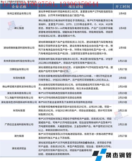 免責聲明:本網站(山東聊城晟杰無縫鋼管廠m.cuirutang.cn)刊載的“1-2月國內鋁項目開工、投產情況”等均源于網絡,版權歸原作者所有,且僅代表原作者觀點,本文所載信息僅供參考。轉載僅為學習與交流之目的,如無意中侵犯您的合法權益,請及時聯系刪除。本網站刊登此篇文章并不意味著本站贊同其觀點或證實其內容的真實性,我們不對其科學性、嚴肅性等作任何形式的保證。如果侵犯了您的版權,請盡快聯系我們予以撤銷,謝謝合作!