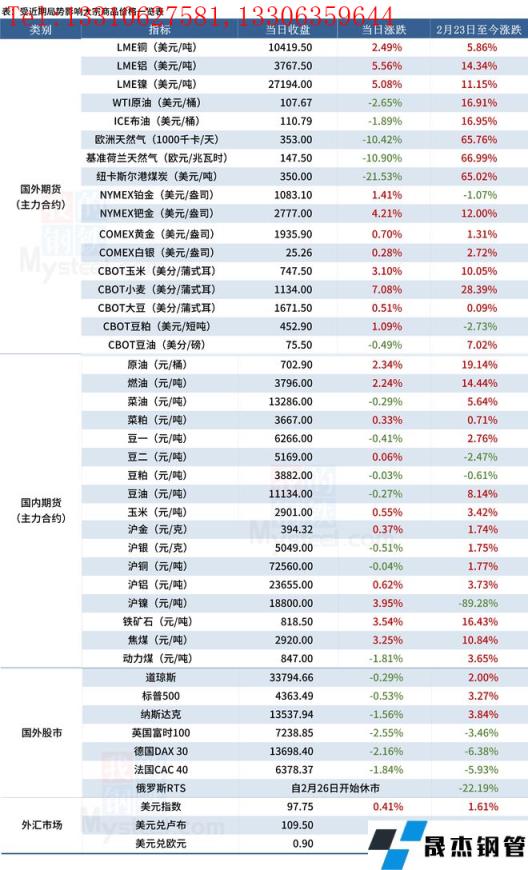 免責聲明:本網站(山東聊城晟杰無縫鋼管廠m.cuirutang.cn)刊載的“受近期局勢影響大宗商品價格一覽表(3月3日)”等均源于網絡,版權歸原作者所有,且僅代表原作者觀點,本文所載信息僅供參考。轉載僅為學習與交流之目的,如無意中侵犯您的合法權益,請及時聯系刪除。本網站刊登此篇文章并不意味著本站贊同其觀點或證實其內容的真實性,我們不對其科學性、嚴肅性等作任何形式的保證。如果侵犯了您的版權,請盡快聯系我們予以撤銷,謝謝合作!