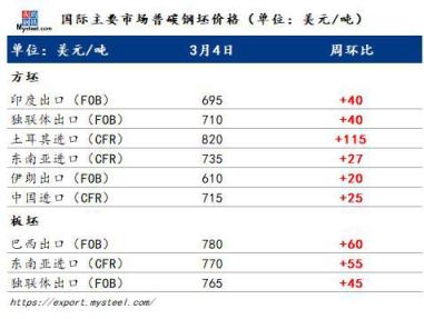 獨(dú)聯(lián)體鋼坯供應(yīng)短缺使得其歐洲買家積極采購(gòu)?fù)炼滟Y源。土耳其方坯也在本周大幅上漲,據(jù)了解,今日土耳其方坯出口報(bào)價(jià)高達(dá)820美元/噸FOB,漲幅超過(guò)100美元/噸,土耳其無(wú)縫厚壁鋼管廠家對(duì)于鋼坯價(jià)格保持樂(lè)觀態(tài)度,部分無(wú)縫厚壁鋼管廠家轉(zhuǎn)向?qū)W⒂阡撆鞒隹冢饲埃炼渲饕隹诼菁y鋼。從一家無(wú)縫厚壁鋼管廠家處了解到,目前市場(chǎng)交易積極,預(yù)計(jì)下周土耳其國(guó)內(nèi)價(jià)格會(huì)達(dá)到850美元/噸,而出口價(jià)格也會(huì)隨之上漲。