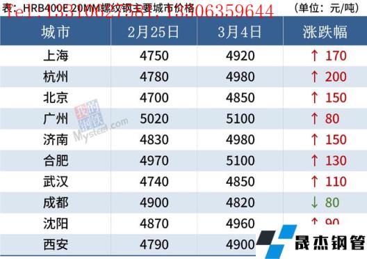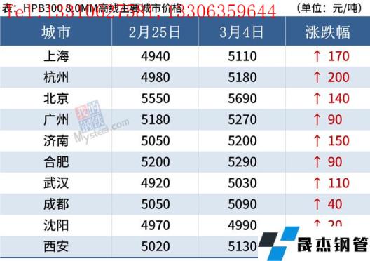 據(jù)監(jiān)測(cè),截至3月4日,全國(guó)主要城市20mm三級(jí)抗震螺紋鋼均價(jià)4946元/噸,周環(huán)比上漲77元/噸;8.0mmHPB300高線均價(jià)5161元/噸,周環(huán)比上漲94元/噸。