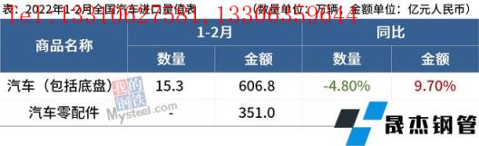 免責(zé)聲明:本網(wǎng)站(山東聊城晟杰無(wú)縫鋼管廠m.cuirutang.cn)刊載的“海關(guān)總署:1-2月中國(guó)出口汽車(chē)47.7萬(wàn)輛,同比增69.70%”等均源于網(wǎng)絡(luò),版權(quán)歸原作者所有,且僅代表原作者觀點(diǎn),本文所載信息僅供參考。轉(zhuǎn)載僅為學(xué)習(xí)與交流之目的,如無(wú)意中侵犯您的合法權(quán)益,請(qǐng)及時(shí)聯(lián)系刪除。本網(wǎng)站刊登此篇文章并不意味著本站贊同其觀點(diǎn)或證實(shí)其內(nèi)容的真實(shí)性,我們不對(duì)其科學(xué)性、嚴(yán)肅性等作任何形式的保證。如果侵犯了您的版權(quán),請(qǐng)盡快聯(lián)系我們予以撤銷(xiāo),謝謝合作!