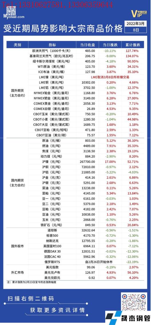 免責聲明:本網站(山東聊城晟杰無縫鋼管廠m.cuirutang.cn)刊載的“受近期局勢影響大宗商品價格一覽表(3月8日)”等均源于網絡,版權歸原作者所有,且僅代表原作者觀點,本文所載信息僅供參考。轉載僅為學習與交流之目的,如無意中侵犯您的合法權益,請及時聯系刪除。本網站刊登此篇文章并不意味著本站贊同其觀點或證實其內容的真實性,我們不對其科學性、嚴肅性等作任何形式的保證。如果侵犯了您的版權,請盡快聯系我們予以撤銷,謝謝合作!
