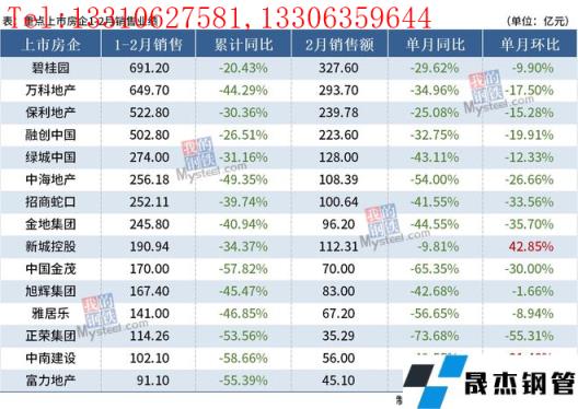 免責聲明:本網站(山東聊城晟杰無縫鋼管廠m.cuirutang.cn)刊載的“15家重點房企2月銷售同比降幅擴大,房地產下行壓力持續”等均源于網絡,版權歸原作者所有,且僅代表原作者觀點,本文所載信息僅供參考。轉載僅為學習與交流之目的,如無意中侵犯您的合法權益,請及時聯系刪除。本網站刊登此篇文章并不意味著本站贊同其觀點或證實其內容的真實性,我們不對其科學性、嚴肅性等作任何形式的保證。如果侵犯了您的版權,請盡快聯系我們予以撤銷,謝謝合作!