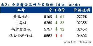 今日全國部分品種均價止跌回漲,其中低合金高強板漲幅為4元/噸。