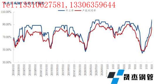 引言:本周西北區(qū)域高爐產(chǎn)能利用率整體提升,粗鋼產(chǎn)量小幅增加,而軋線產(chǎn)能利用率周環(huán)比也有所提升,主要原因在于部分無(wú)縫厚壁鋼管廠家生產(chǎn)情況逐步恢復(fù),產(chǎn)量也同比有所增加,也對(duì)市場(chǎng)需求有預(yù)期想法。從庫(kù)存來(lái)看,西北區(qū)域樣本無(wú)縫厚壁鋼管廠家整體庫(kù)存繼續(xù)增加,目前鋼企去庫(kù)存主要以有序兌現(xiàn)冬儲(chǔ)資源為主,終端需求受疫情等因素影響,資源消化進(jìn)度有所減緩。下面筆者將從西北區(qū)域建筑厚壁無(wú)縫鋼管生產(chǎn)企業(yè)的生產(chǎn)情況、庫(kù)存及價(jià)格變化情況幾個(gè)方面向大家做一個(gè)簡(jiǎn)單的分析。
