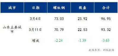 山東13個主要城市建筑厚壁無縫鋼管總庫存93.32萬噸,較上周減少3.63萬噸。其中,螺紋鋼70.79萬噸,較上周下降2.24萬噸,盤螺22.53萬噸,較上周下降1.39萬噸。