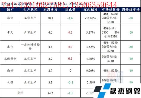 江蘇優(yōu)特?zé)o縫厚壁鋼管廠家棒材總庫(kù)存34.2萬(wàn)噸,較上周下降1.1萬(wàn)噸,環(huán)比降3.12%,較去年同期下降7.97萬(wàn)噸,同比降18.9%,目前江蘇優(yōu)特?zé)o縫厚壁鋼管廠家除東方特鋼一條棒材線檢修外,其余無(wú)縫厚壁鋼管廠家正常生產(chǎn)。