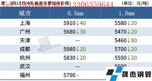 冷軋板卷:3月15日,全國24個主要城市1.0mm冷卷均價5627元/噸,較上個交易日下跌26元/噸。據西南市場反饋,成、渝地區冷軋價格與外圍形成較大差異,主要還是市場資源較為緊張,部分規格缺貨,貿易商挺價意愿較強。庫存方面,據悉目前上海市場冷軋板卷資源能正常入庫,然而主流倉庫提貨全部要求提供48小時內的核酸檢測報告,方能提貨,現上海庫存壓力較大。綜合來看,故預計16日國內冷軋板卷價格或將震蕩偏弱運行。
