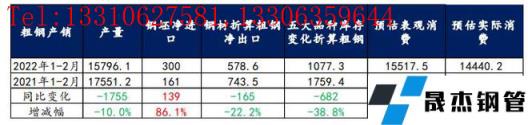 免責聲明:本網站(山東聊城晟杰無縫鋼管廠m.cuirutang.cn)刊載的“解讀:2022年1-2月粗鋼產銷同比雖有下滑,但消費表現明顯好于市場預期”等均源于網絡,版權歸原作者所有,且僅代表原作者觀點,本文所載信息僅供參考。轉載僅為學習與交流之目的,如無意中侵犯您的合法權益,請及時聯系刪除。本網站刊登此篇文章并不意味著本站贊同其觀點或證實其內容的真實性,我們不對其科學性、嚴肅性等作任何形式的保證。如果侵犯了您的版權,請盡快聯系我們予以撤銷,謝謝合作!