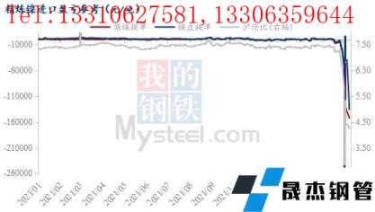 造成一口價高昂的另一個重要原因,在于目前史無前例的進口虧損。盡管LME宣布8日的鎳價無效,以7日收盤價為準,但仍有50300美元/噸之高,仍是歷史極值;相比之下“僅僅”三連漲停即被打斷漲勢的滬鎳則較之相去甚遠。以3月15日滬鎳收盤價計算,滬倫比為4.30,處歷史極低位置;而進口盈虧在3月8日時一度達虧損25萬元/噸,目前在虧損15萬元/噸左右,若進口比價無法修復,國內進口補給將不可避免地面臨幾乎斷檔的局面。