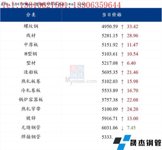 3月17日普鋼絕對價格指數變化:綜合指數5193.62,上漲21.4;螺紋鋼指數4950.59,上漲33.42;線材指數5281.15,上漲28.96;熱軋板卷指數5102.03,上漲15.98;冷軋板卷指數5533.89,上漲16.7;中厚板指數5151.92,上漲11.47。
