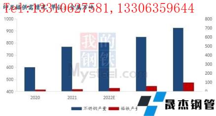 據統計,2021年印尼不銹鋼粗鋼產量494.2萬噸,全部為300系,同比增長95.33%,其中印尼青山產量為359.2萬噸,占比72%。2022年印尼新增投產計劃共計200萬噸,其中青山預計2季度新增100萬噸產能,不排除新增投產直接用于生產高冰鎳,若印尼青山持續減產不銹鋼生產高冰鎳,鉻需求將繼續下滑。預計2022年印尼不銹鋼產量約為540萬噸,較年初預期減少約30萬噸,鉻需求量減少約11萬噸。