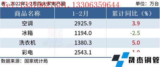 免責聲明:本網站(山東聊城晟杰無縫鋼管廠m.cuirutang.cn)刊載的“統計局:1-2月中國四大家電產量3增1降”等均源于網絡,版權歸原作者所有,且僅代表原作者觀點,本文所載信息僅供參考。轉載僅為學習與交流之目的,如無意中侵犯您的合法權益,請及時聯系刪除。本網站刊登此篇文章并不意味著本站贊同其觀點或證實其內容的真實性,我們不對其科學性、嚴肅性等作任何形式的保證。如果侵犯了您的版權,請盡快聯系我們予以撤銷,謝謝合作!