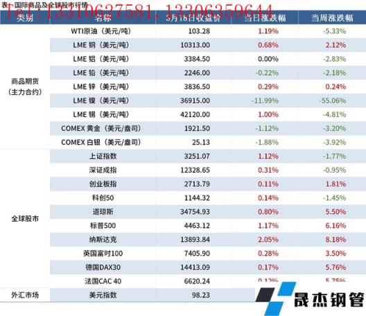 當周,商品期貨方面,原油、鋁、黃金價格明顯下跌,倫鎳開盤后連續(xù)3日跌停,周度大跌55.06%;商品方面僅銅、鋅價格小幅上漲。全球股市方面,中國股市下跌,歐美股市上漲,其中,納斯達克指數(shù)漲幅逾8%。外匯市場方面,美元指數(shù)收于98.23,下跌0.91%。