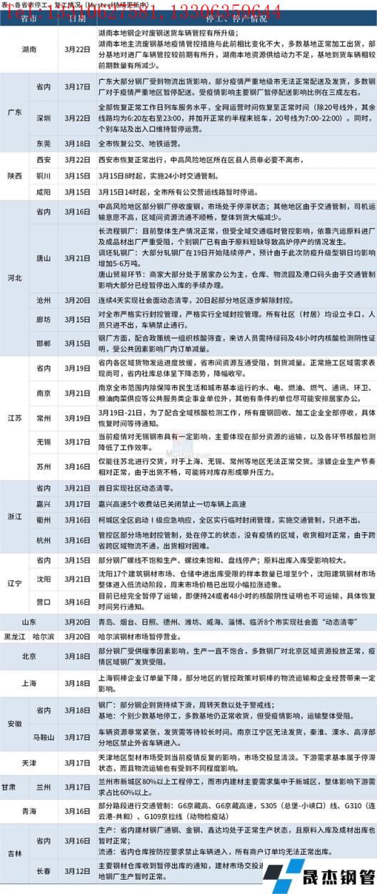 截至3月22日,匯總了16個(gè)省份停工復(fù)工最新信息。其中,湖南省本地鋼企對(duì)廢鋼送貨車輛管控有所升級(jí);主流廢鋼基地疫情管控措施與此前相比變化不大,多數(shù)基地正常加工出貨,部分基地對(duì)進(jìn)廠車輛管控較前期有所升。唐山長(zhǎng)流程無(wú)縫厚壁鋼管廠家目前整體生產(chǎn)情況正常,但受全域交通臨時(shí)管控影響,依靠汽運(yùn)原料進(jìn)廠及成品材出廠嚴(yán)重受阻,個(gè)別無(wú)縫厚壁鋼管廠家已有由于原料短缺導(dǎo)致高爐停產(chǎn)的情況發(fā)生。山東省已有青島、煙臺(tái)、日照、德州、濰坊、威海、淄博、臨沂8個(gè)市實(shí)現(xiàn)社會(huì)面“動(dòng)態(tài)清零”。具體情況如下: