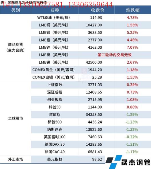 免責聲明:本網站(山東聊城晟杰無縫鋼管廠m.cuirutang.cn)刊載的“2022年03月24日早讀:黑色期貨夜盤全線上漲,國際原油金屬期價大漲”等均源于網絡,版權歸原作者所有,且僅代表原作者觀點,本文所載信息僅供參考。轉載僅為學習與交流之目的,如無意中侵犯您的合法權益,請及時聯系刪除。本網站刊登此篇文章并不意味著本站贊同其觀點或證實其內容的真實性,我們不對其科學性、嚴肅性等作任何形式的保證。如果侵犯了您的版權,請盡快聯系我們予以撤銷,謝謝合作!