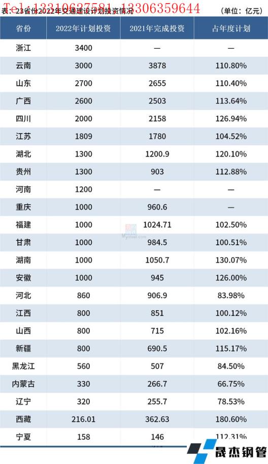 免責(zé)聲明:本網(wǎng)站(山東聊城晟杰無縫鋼管廠m.cuirutang.cn)刊載的“23省份2022年交通建設(shè)計(jì)劃投資近3萬億元”等均源于網(wǎng)絡(luò),版權(quán)歸原作者所有,且僅代表原作者觀點(diǎn),本文所載信息僅供參考。轉(zhuǎn)載僅為學(xué)習(xí)與交流之目的,如無意中侵犯您的合法權(quán)益,請(qǐng)及時(shí)聯(lián)系刪除。本網(wǎng)站刊登此篇文章并不意味著本站贊同其觀點(diǎn)或證實(shí)其內(nèi)容的真實(shí)性,我們不對(duì)其科學(xué)性、嚴(yán)肅性等作任何形式的保證。如果侵犯了您的版權(quán),請(qǐng)盡快聯(lián)系我們予以撤銷,謝謝合作!
