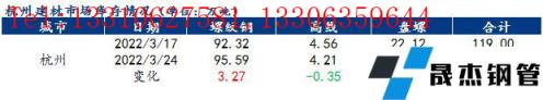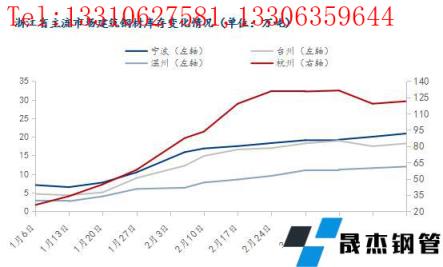 截3月24日,據我網調研浙江省主流市場包括杭州、寧波、臺州和溫州四大市場的樣本倉庫建筑厚壁無縫鋼管社會庫存總量為172.39萬噸,較上一周增加4.31萬噸,增幅2.56%。具體情況如圖所示。