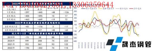 據(jù)調(diào)研跟蹤,目前區(qū)域間資源流動的頻率、主動性、體量較往年相比明顯下降,主要原因在于南下利潤倒掛的時間周期占比較高、全國范圍內(nèi)執(zhí)行能耗雙控導(dǎo)致各區(qū)域資源供應(yīng)均相對有限、以及無縫厚壁鋼管廠家目前趨向增加直供比例三大重要原因。