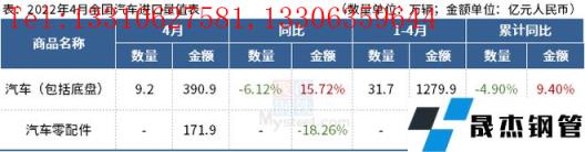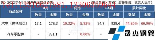 免責聲明:本網站(山東聊城晟杰無縫鋼管廠m.cuirutang.cn)刊載的“海關總署:4月中國出口汽車17.1萬輛,同比增長10.32%”等均源于網絡,版權歸原作者所有,且僅代表原作者觀點,本文所載信息僅供參考。轉載僅為學習與交流之目的,如無意中侵犯您的合法權益,請及時聯系刪除。本網站刊登此篇文章并不意味著本站贊同其觀點或證實其內容的真實性,我們不對其科學性、嚴肅性等作任何形式的保證。如果侵犯了您的版權,請盡快聯系我們予以撤銷,謝謝合作!