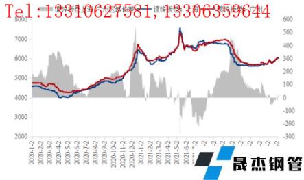 華東和華南作為鍍鋅板卷三大主流區域中的兩個,其分工職責略有不同,華東地區以上海為例,其更多是作為無縫厚壁鋼管廠家投放資源的聚集地。隨著周邊江蘇、浙江等下游產業越來越集中,上海地區資源真正消化也是依托周邊市場。而華南市場一直以來作為消費市場,基本屬于是資源流入型區域,尤其是華東、華北地區資源,依托水運將大部分資源發往華南。無論是從地理位置還是資源消費,華南地區價格本應該處于三大主流區域中價格最高的水平,但是從圖1可以明顯看出,2021年6月中下旬到8月上旬,差不多維持了一個半月的倒掛,華南地區鍍鋅板卷價格較華東地區倒掛幅度達到200元/噸左右。筆者分析來看,2021年6月份市場仍處于上漲過程中,隨著價格的不斷上漲,華東與華南地區的價格逐漸拉開差距,華南地區的上漲速度明顯不及華東。在下跌過程中,華南地區價格表現更為堅挺,逐漸與華東地區拉開差距,到11月份兩者間差距擴大至全年最高450元/噸,而后華南價格高于華東地區逐漸恢復正常水平。